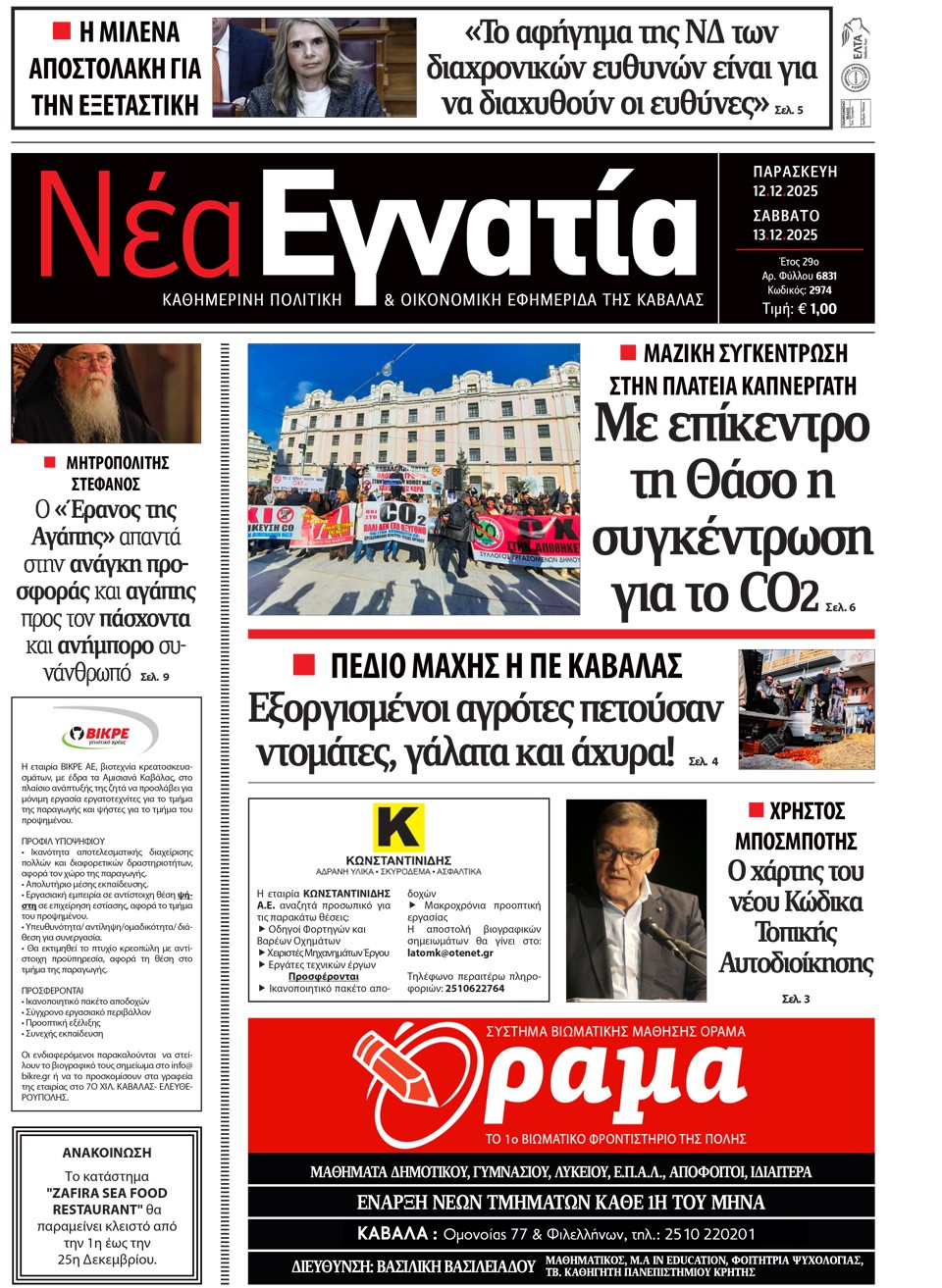 ΝΕΑ ΕΓΝΑΤΙΑ - 12 Δεκεμβρίου 2025