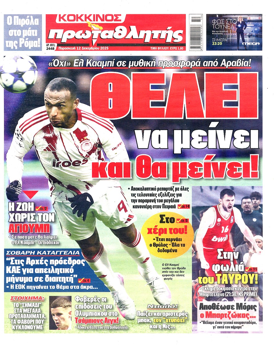 ΠΡΩΤΑΘΛΗΤΗΣ - 12 Δεκεμβρίου 2025