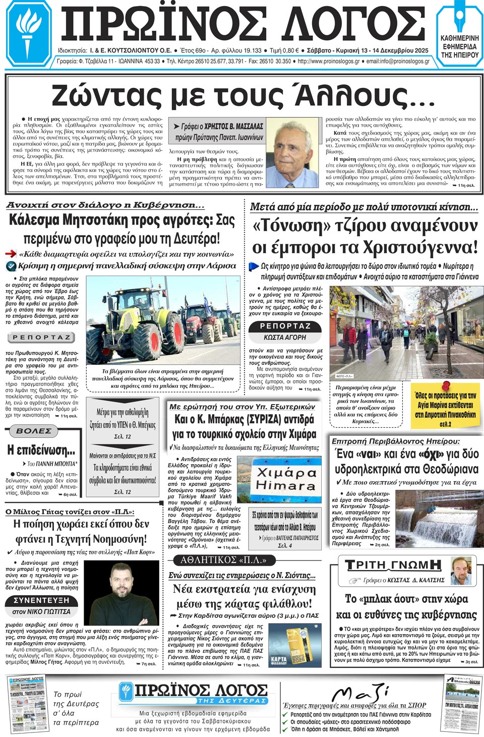ΠΡΩΙΝΟΣ ΛΟΓΟΣ - 13 Δεκεμβρίου 2025