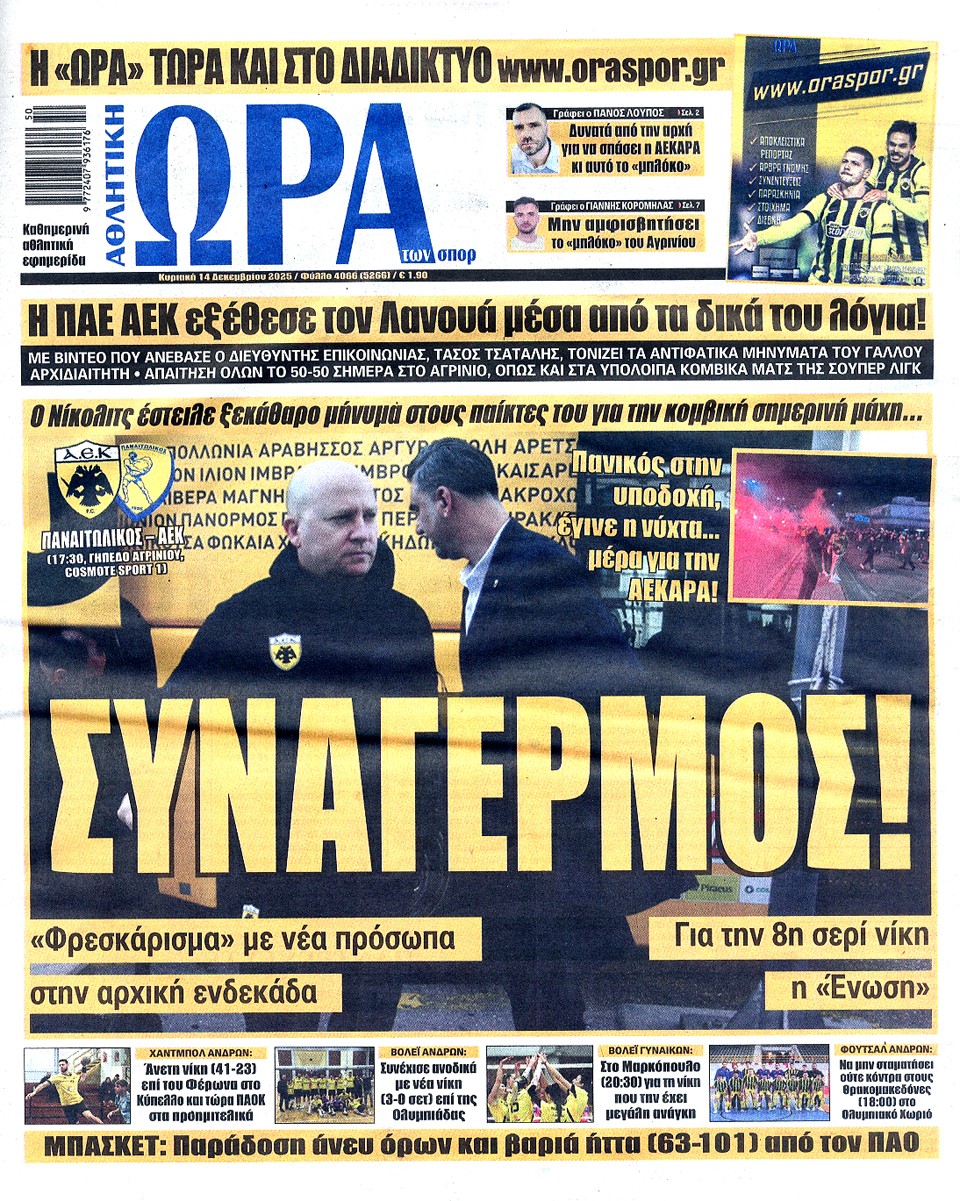 ΑΘΛΗΤΙΚΗ ΩΡΑ ΤΩΝ ΣΠΟΡ - 14 Δεκεμβρίου 2025