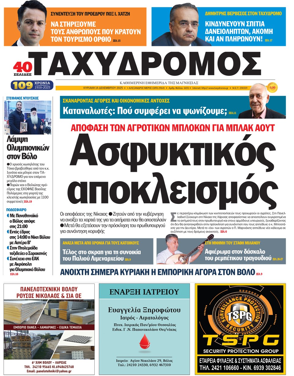 ΤΑΧΥΔΡΟΜΟΣ - 14 Δεκεμβρίου 2025