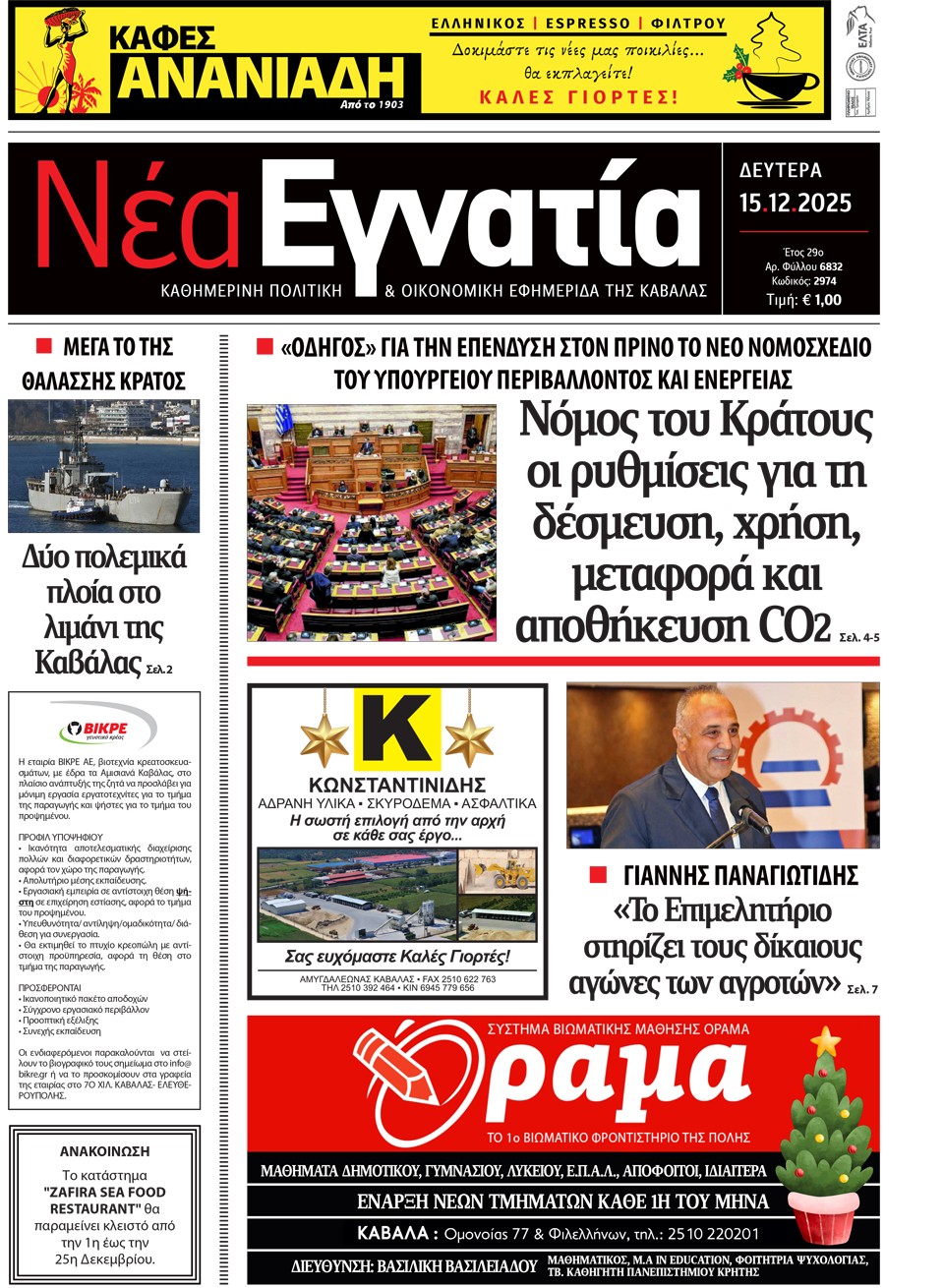 ΝΕΑ ΕΓΝΑΤΙΑ - 15 Δεκεμβρίου 2025