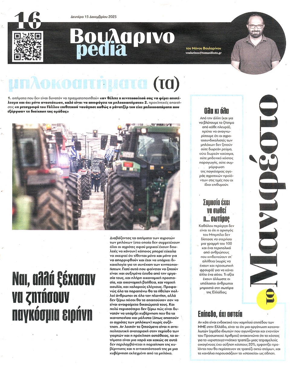 ΤΟ ΜΑΝΙΦΕΣΤΟ - 15 Δεκεμβρίου 2025