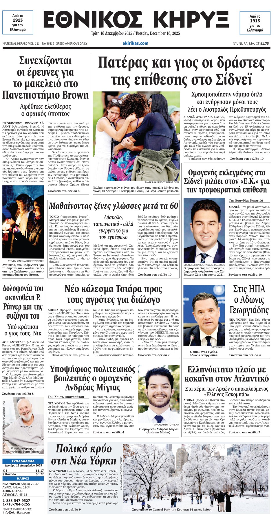 ΕΘΝΙΚΟΣ ΚΗΡΥΞ - 16 Δεκεμβρίου 2025