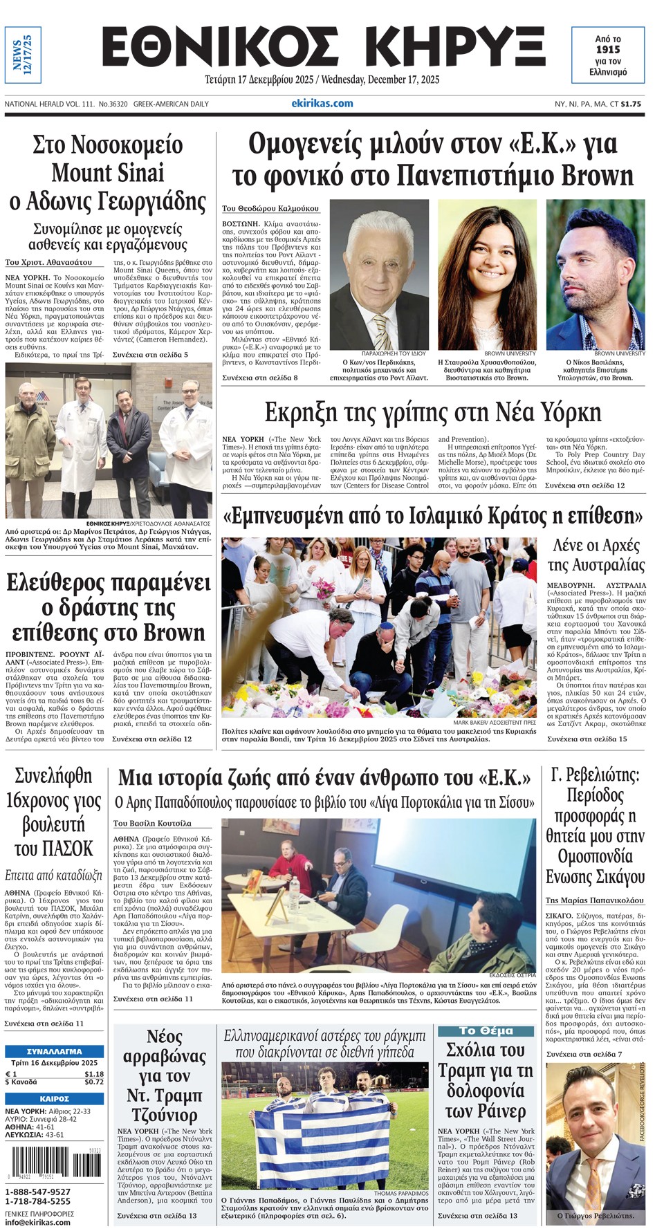 ΕΘΝΙΚΟΣ ΚΗΡΥΞ - 17 Δεκεμβρίου 2025