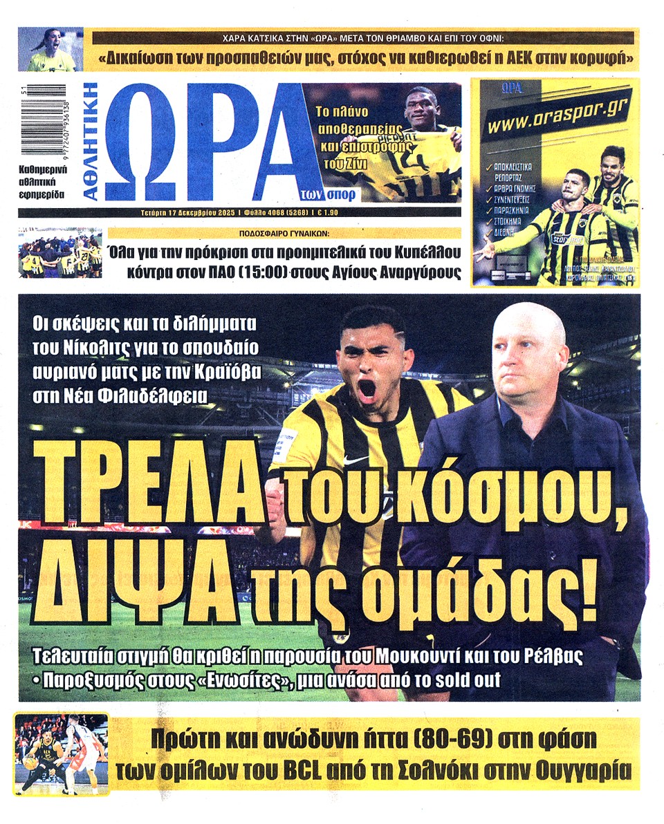 ΑΘΛΗΤΙΚΗ ΩΡΑ ΤΩΝ ΣΠΟΡ - 17 Δεκεμβρίου 2025