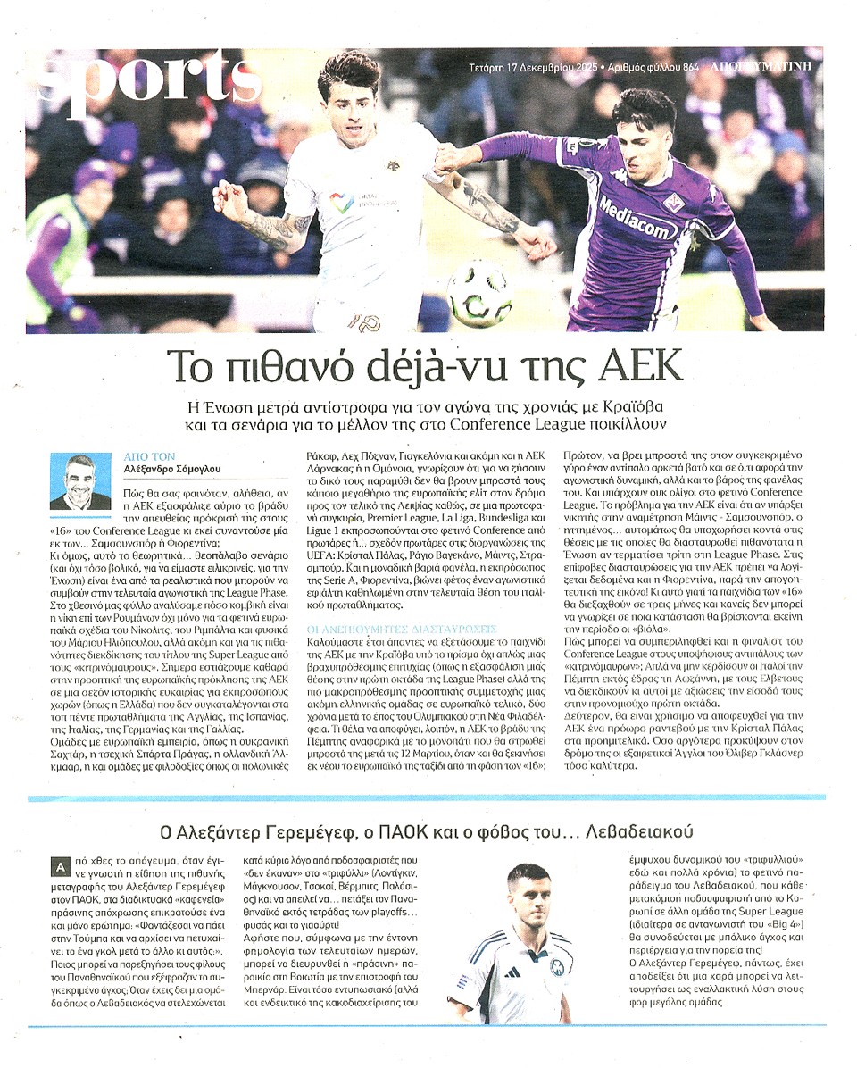 ΑΠΟΓΕΥΜΑΤΙΝΗ - 17 Δεκεμβρίου 2025