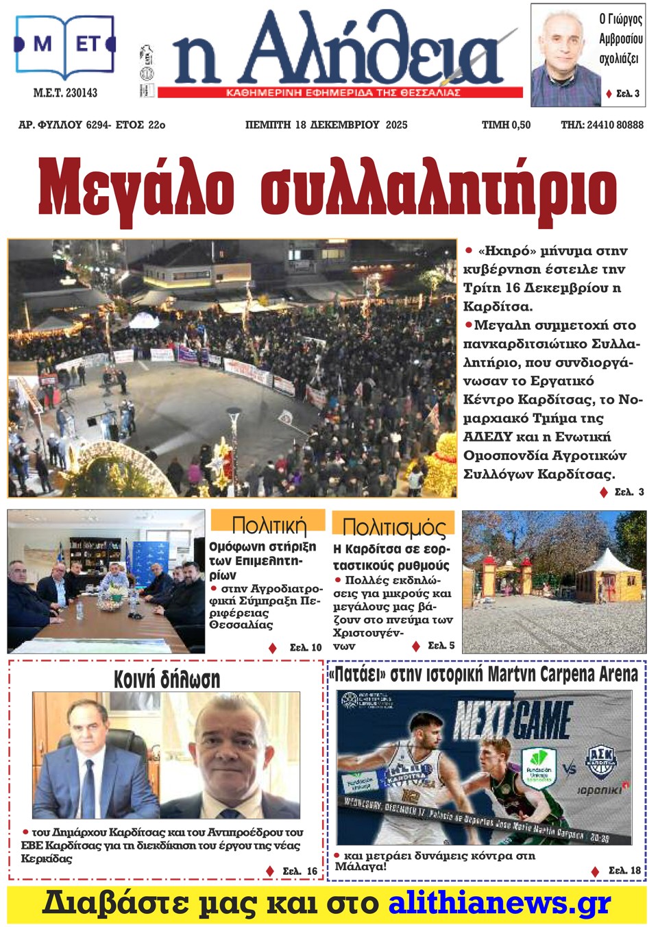 Η ΑΛΗΘΕΙΑ - 18 Δεκεμβρίου 2025