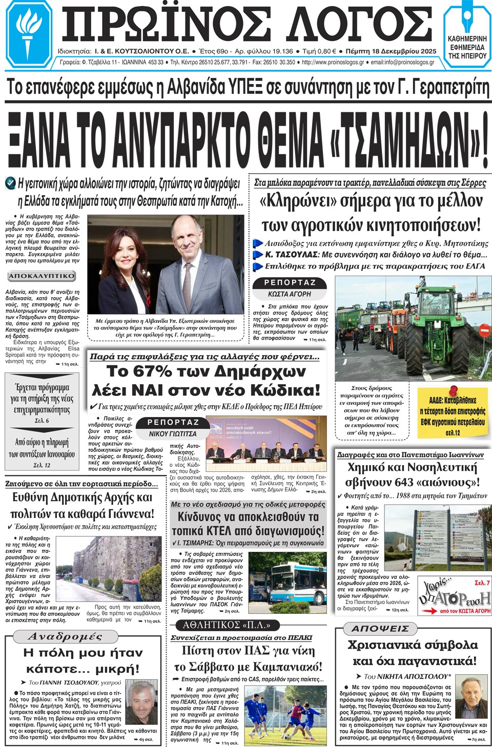 ΠΡΩΙΝΟΣ ΛΟΓΟΣ - 18 Δεκεμβρίου 2025