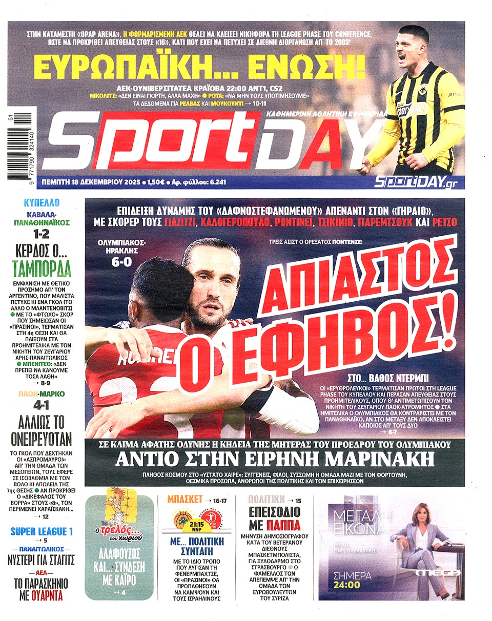 SPORTDAY - 18 Δεκεμβρίου 2025