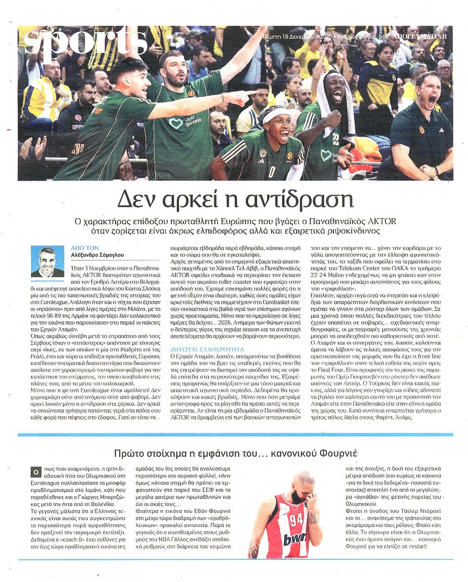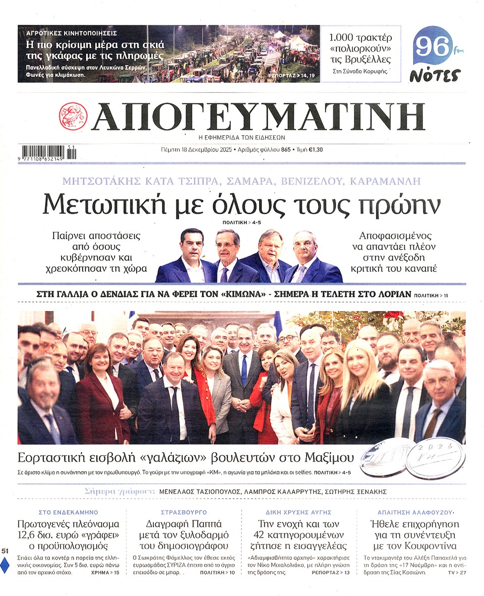 ΑΠΟΓΕΥΜΑΤΙΝΗ - 18 Δεκεμβρίου 2025