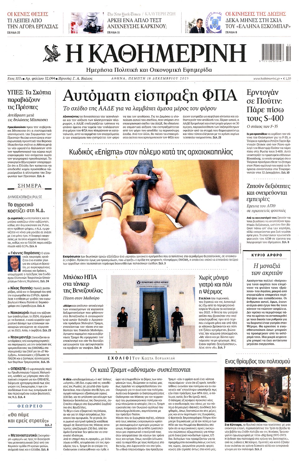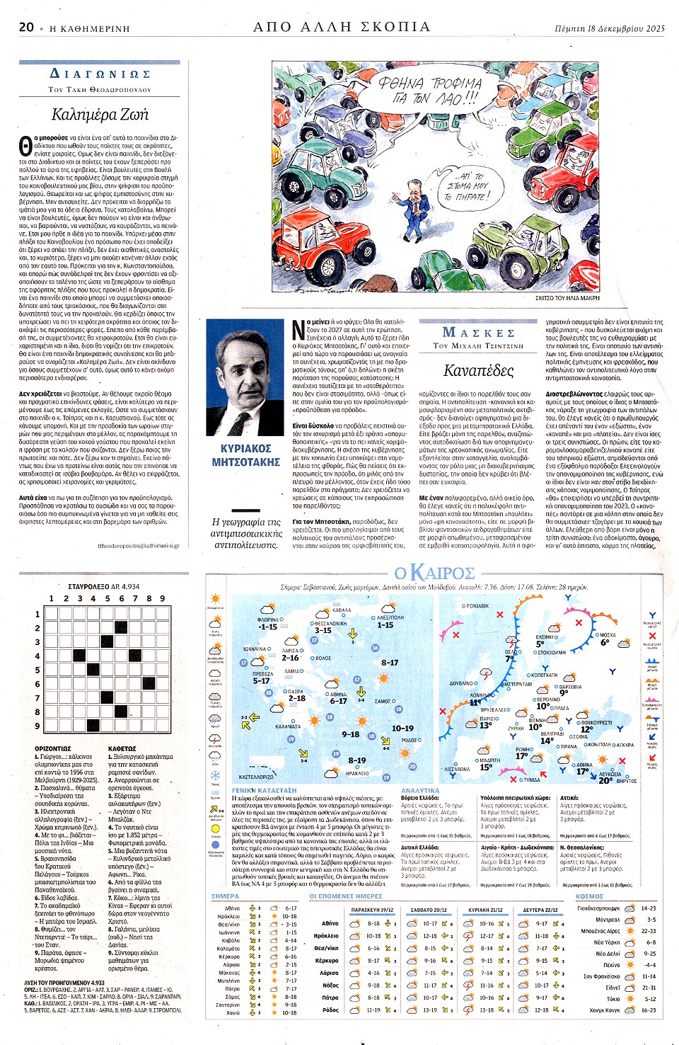 ΚΑΘΗΜΕΡΙΝΗ - 18 Δεκεμβρίου 2025
