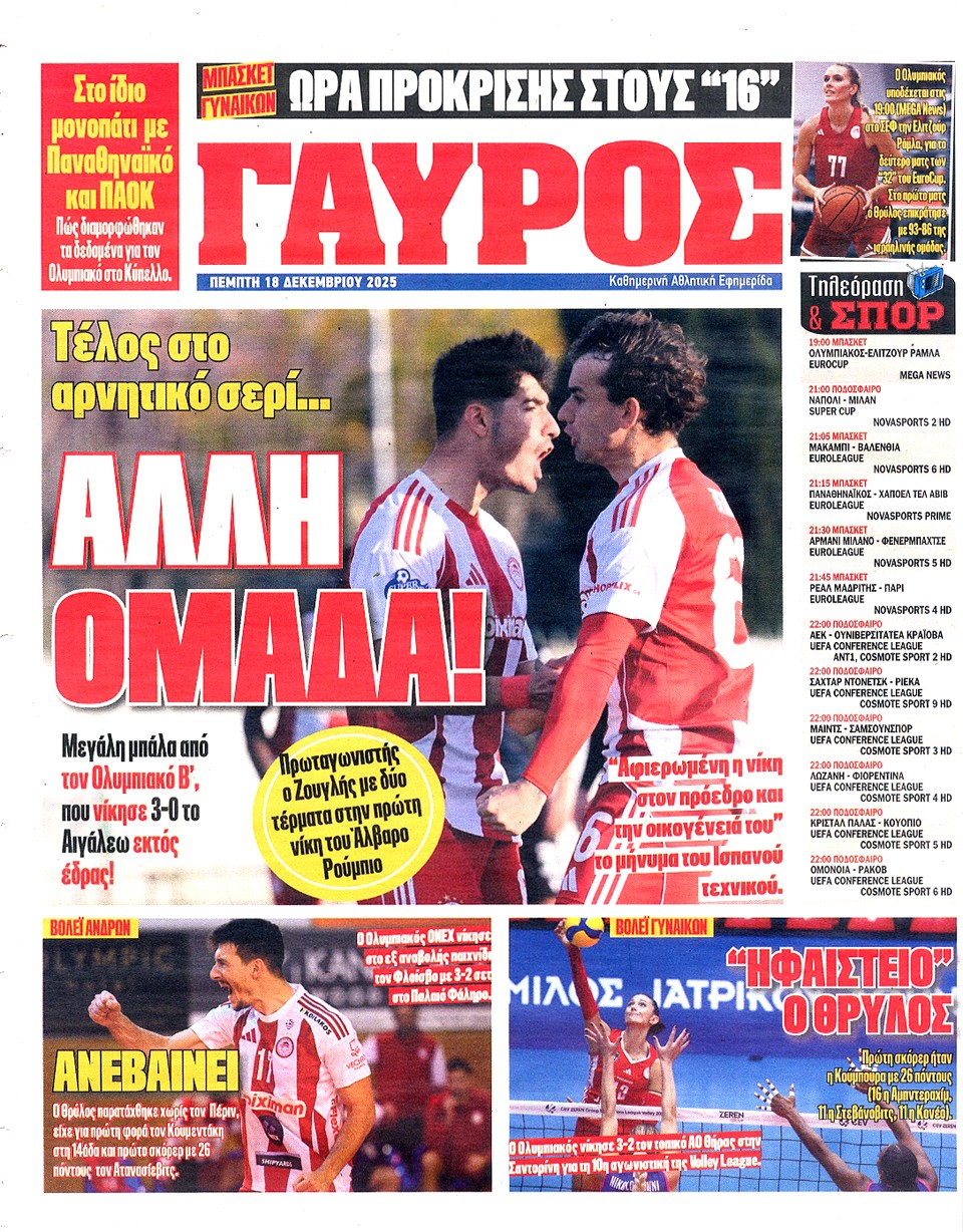 ΠΡΩΤΑΘΛΗΤΗΣ - 18 Δεκεμβρίου 2025