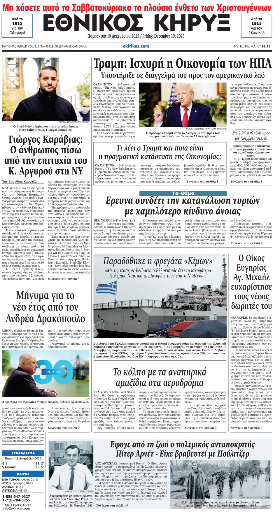 ΕΘΝΙΚΟΣ ΚΗΡΥΞ - 19 Δεκεμβρίου 2025