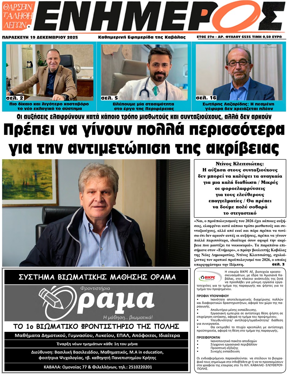 ΕΝΗΜΕΡΟΣ - 19 Δεκεμβρίου 2025