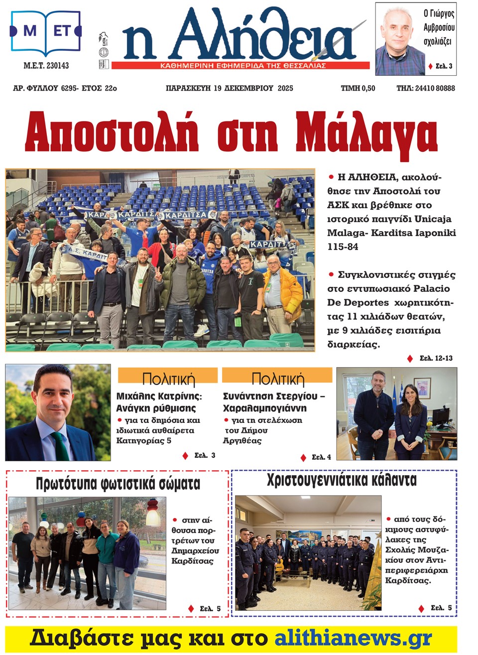 Η ΑΛΗΘΕΙΑ - 19 Δεκεμβρίου 2025