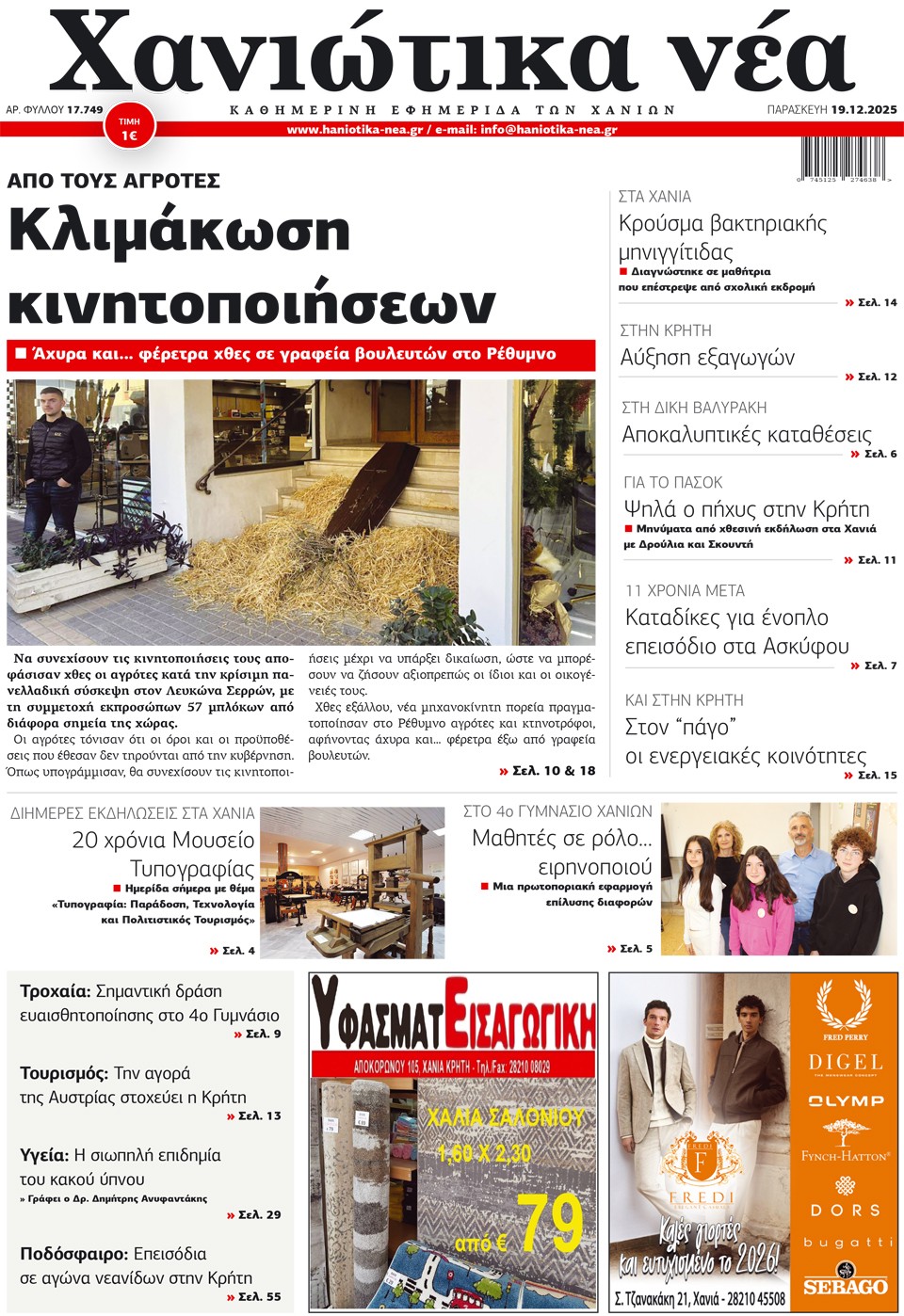 ΧΑΝΙΩΤΙΚΑ ΝΕΑ - 19 Δεκεμβρίου 2025