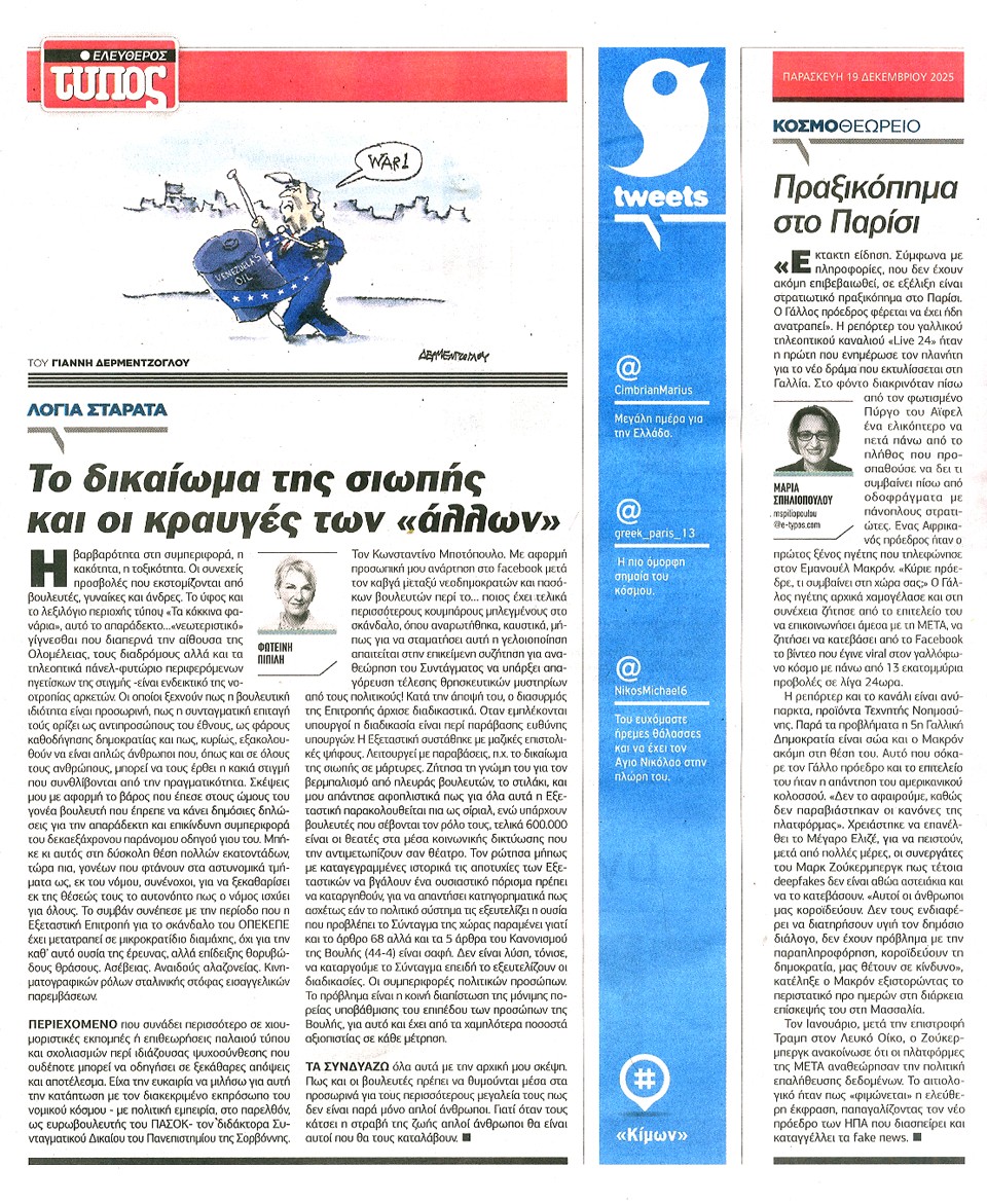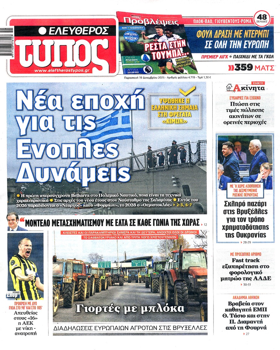 ΕΛΕΥΘΕΡΟΣ ΤΥΠΟΣ - 19 Δεκεμβρίου 2025