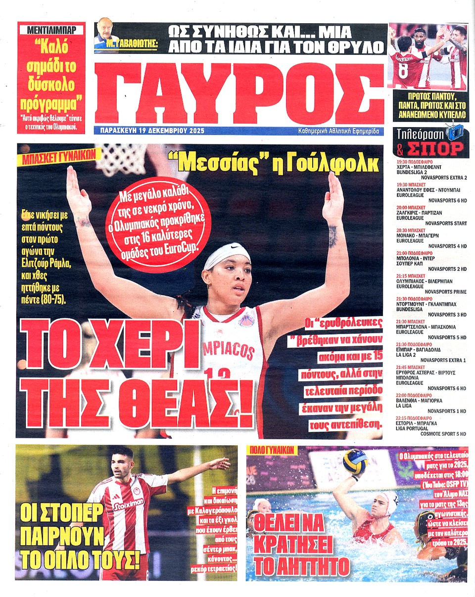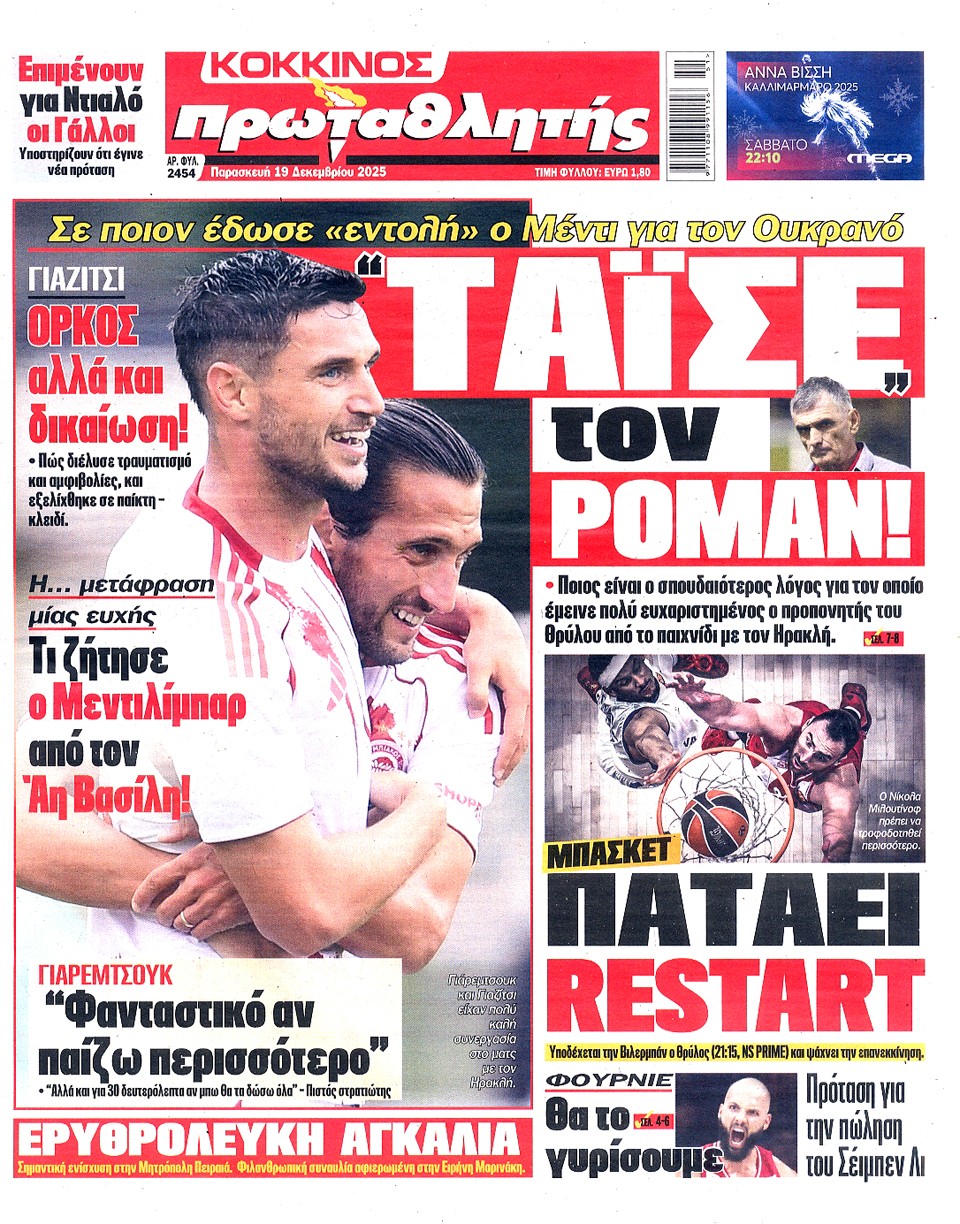 ΠΡΩΤΑΘΛΗΤΗΣ - 19 Δεκεμβρίου 2025