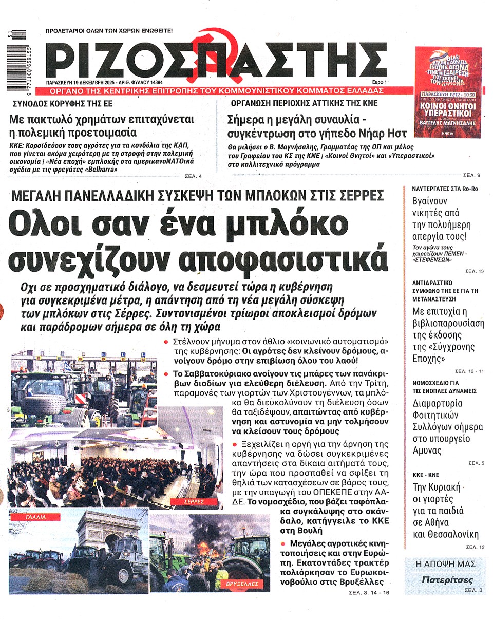 ΡΙΖΟΣΠΑΣΤΗΣ - 19 Δεκεμβρίου 2025