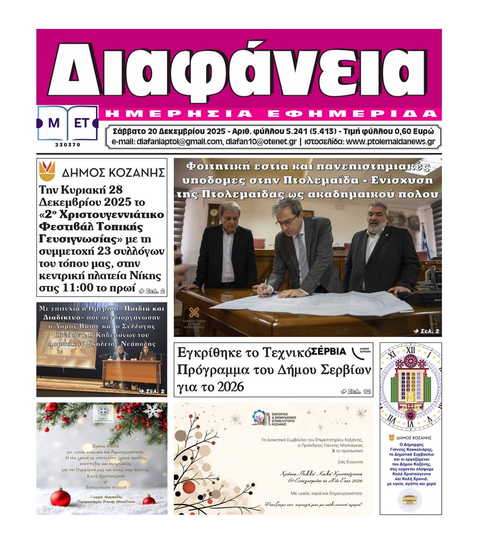 ΔΙΑΦΑΝΕΙΑ - 20 Δεκεμβρίου 2025