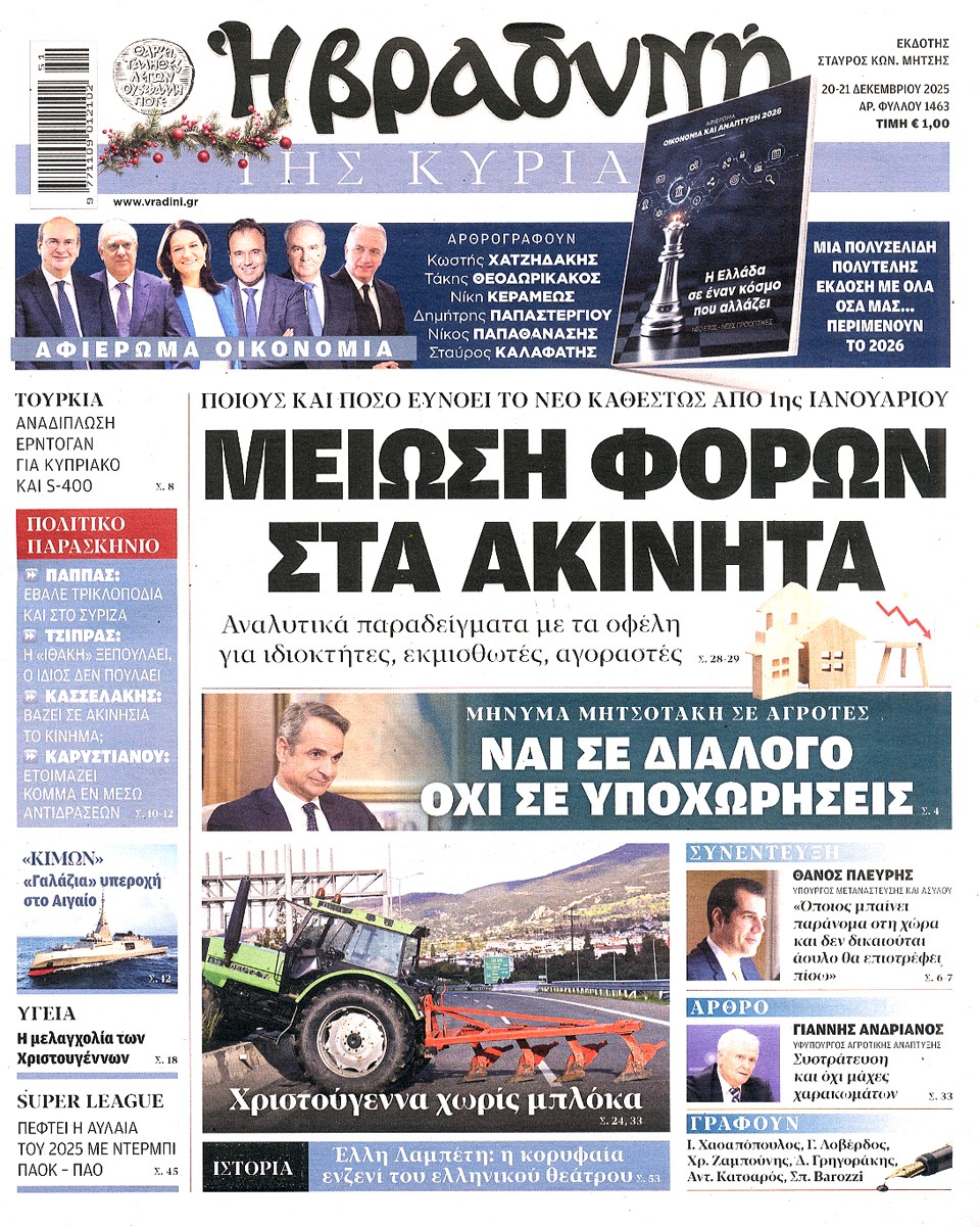 ΒΡΑΔΥΝΗ - 20 Δεκεμβρίου 2025
