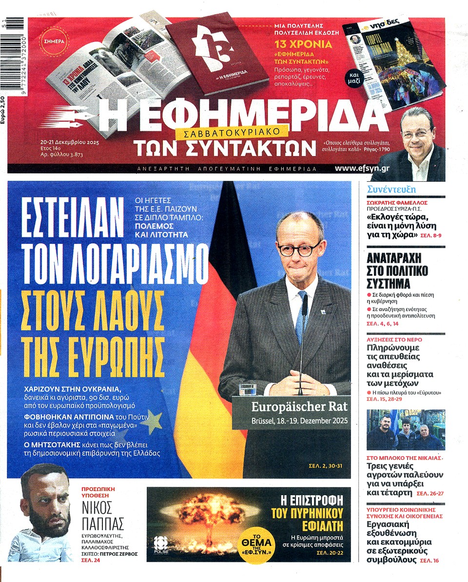 Η ΕΦΗΜΕΡΙΔΑ ΤΩΝ ΣΥΝΤΑΚΤΩΝ - 20 Δεκεμβρίου 2025
