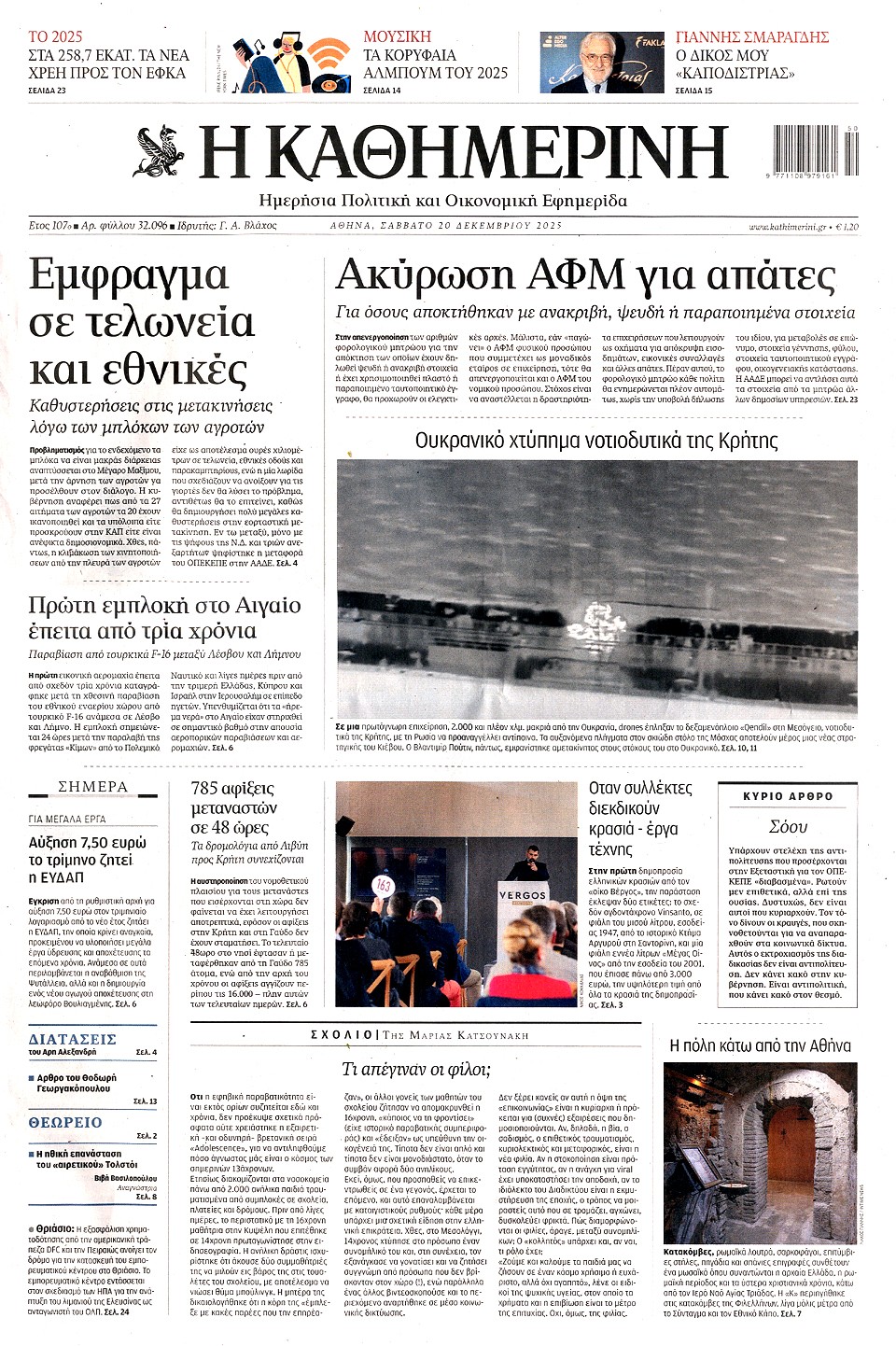 ΚΑΘΗΜΕΡΙΝΗ - 20 Δεκεμβρίου 2025