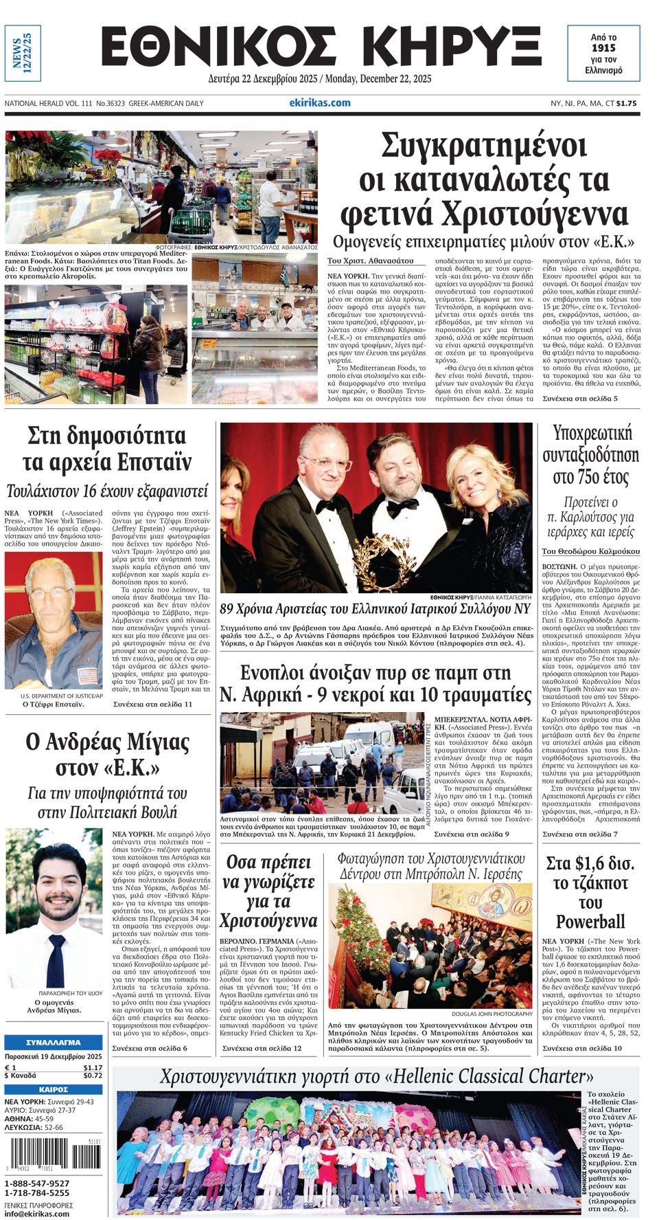 ΕΘΝΙΚΟΣ ΚΗΡΥΞ - 22 Δεκεμβρίου 2025