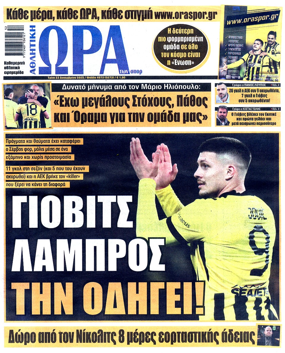 ΑΘΛΗΤΙΚΗ ΩΡΑ ΤΩΝ ΣΠΟΡ - 23 Δεκεμβρίου 2025