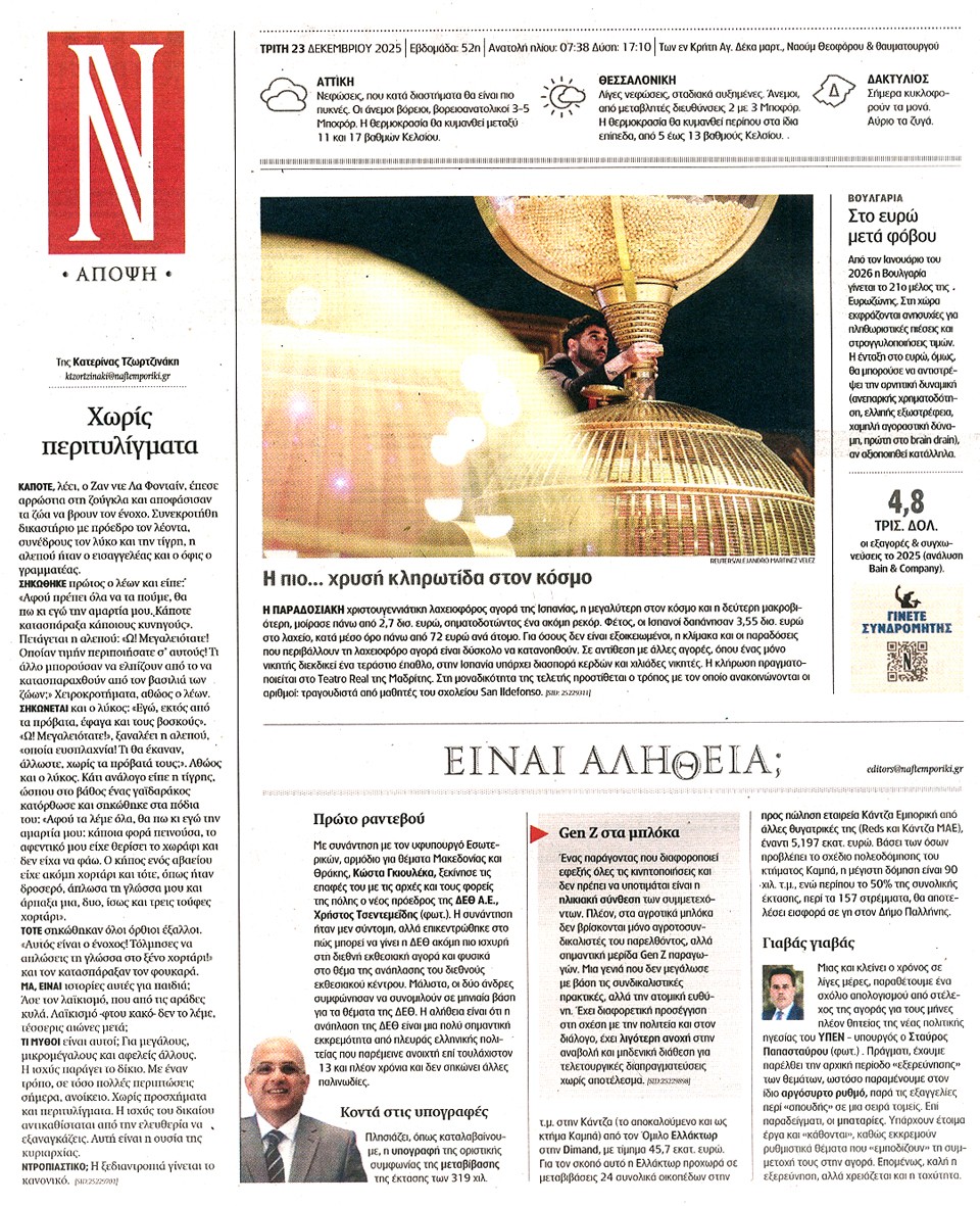 ΝΑΥΤΕΜΠΟΡΙΚΗ - 23 Δεκεμβρίου 2025