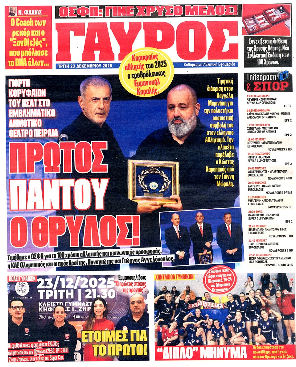 ΠΡΩΤΑΘΛΗΤΗΣ - 23 Δεκεμβρίου 2025