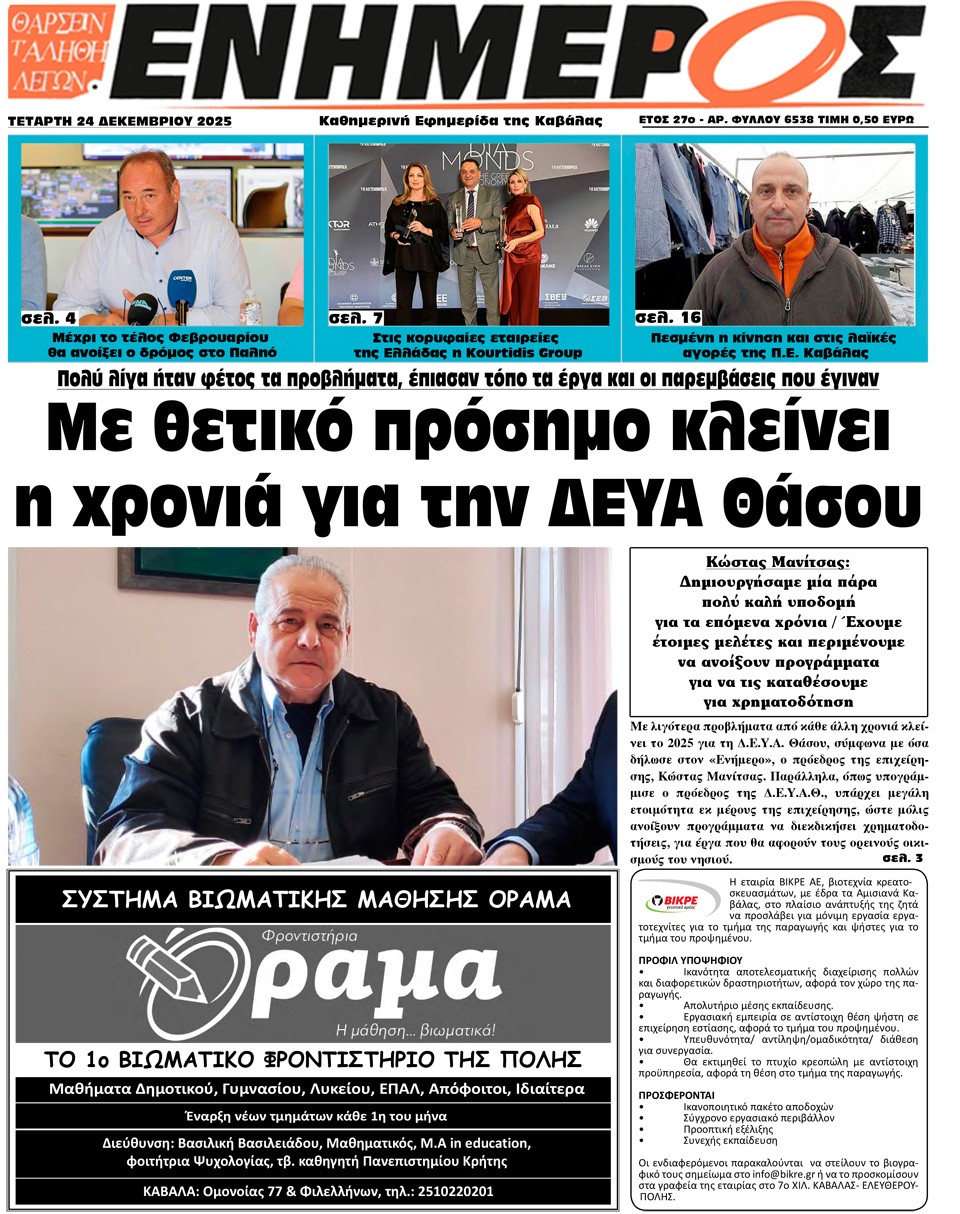 ΕΝΗΜΕΡΟΣ - 24 Δεκεμβρίου 2025
