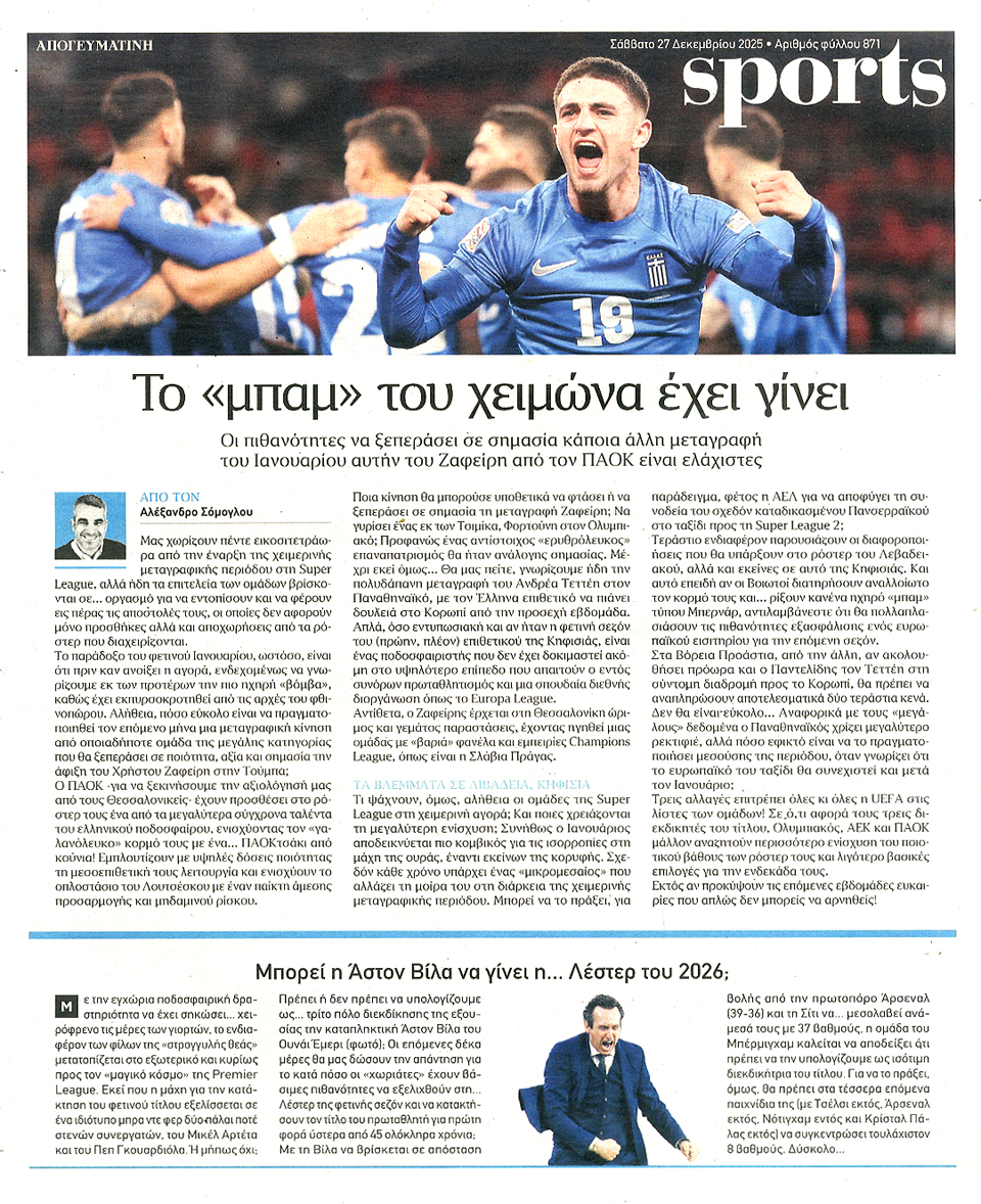 ΑΠΟΓΕΥΜΑΤΙΝΗ - 27 Δεκεμβρίου 2025