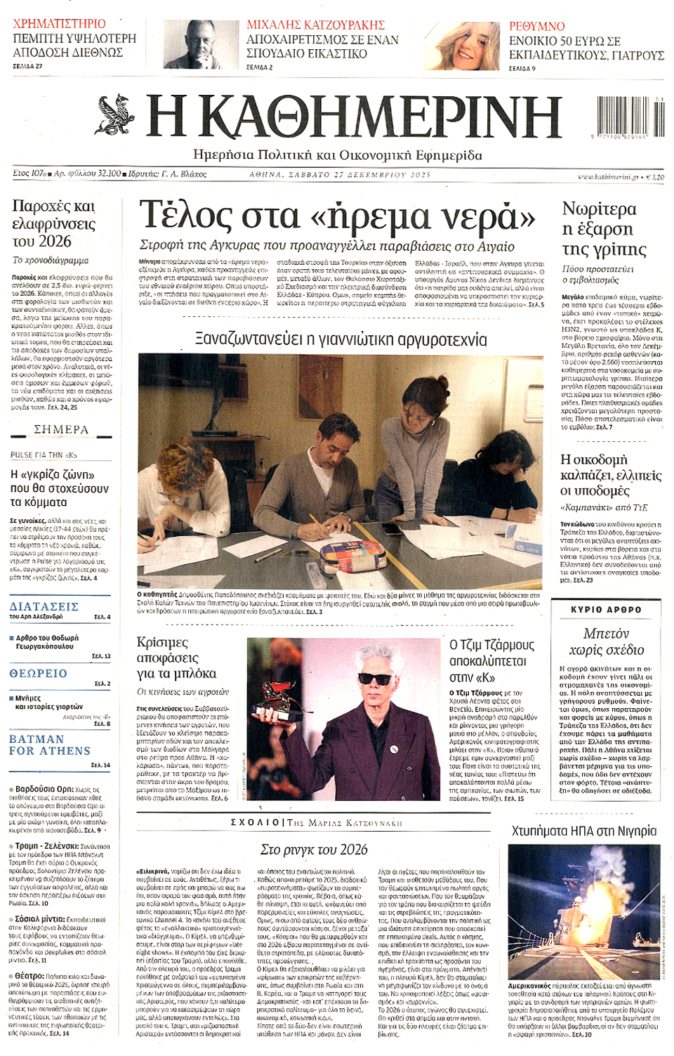 ΚΑΘΗΜΕΡΙΝΗ - 27 Δεκεμβρίου 2025