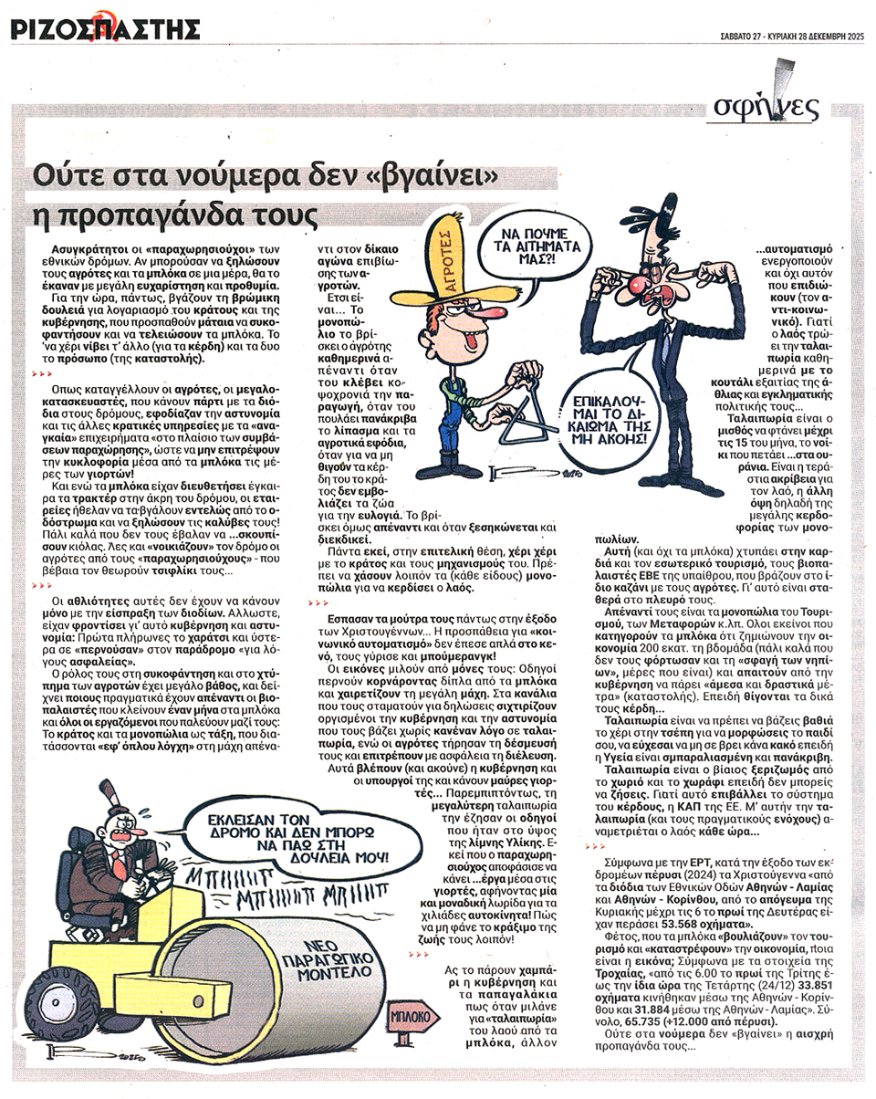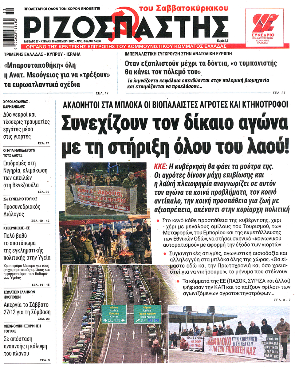 ΡΙΖΟΣΠΑΣΤΗΣ ΤΗΣ ΚΥΡΙΑΚΗΣ - 27 Δεκεμβρίου 2025