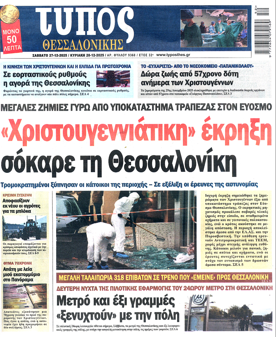 ΤΥΠΟΣ ΘΕΣΣΑΛΟΝΙΚΗΣ - 27 Δεκεμβρίου 2025