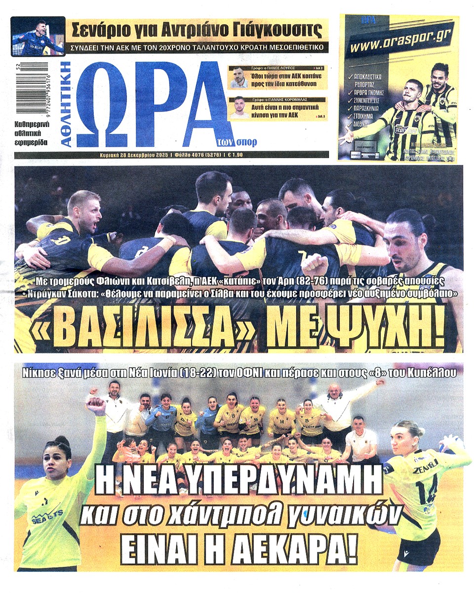 ΑΘΛΗΤΙΚΗ ΩΡΑ ΤΩΝ ΣΠΟΡ - 28 Δεκεμβρίου 2025
