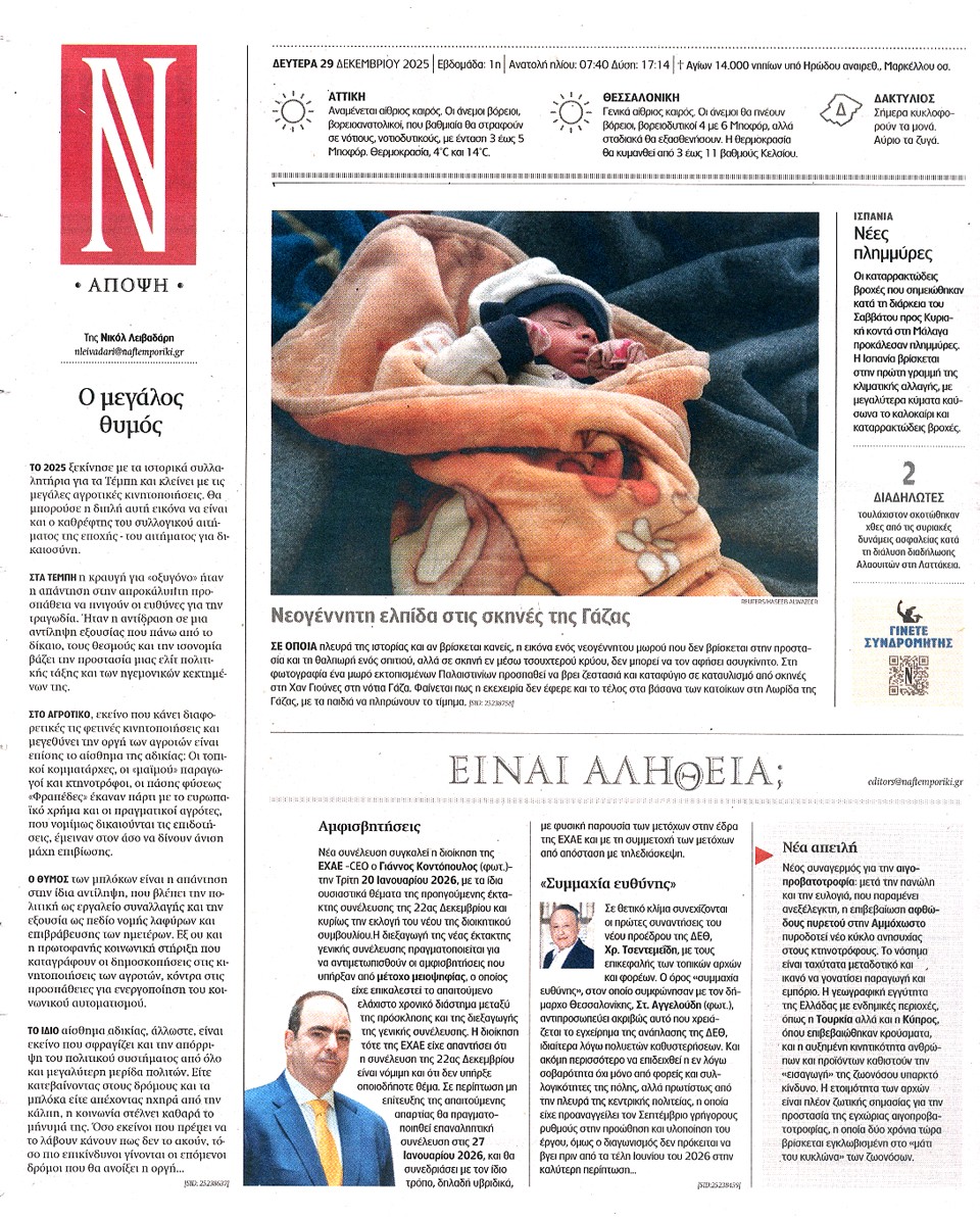 ΝΑΥΤΕΜΠΟΡΙΚΗ - 29 Δεκεμβρίου 2025