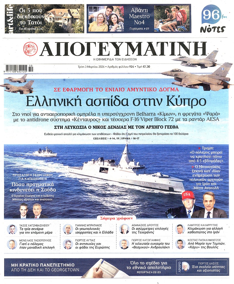 ΑΠΟΓΕΥΜΑΤΙΝΗ - 03 Μαρτίου 2026