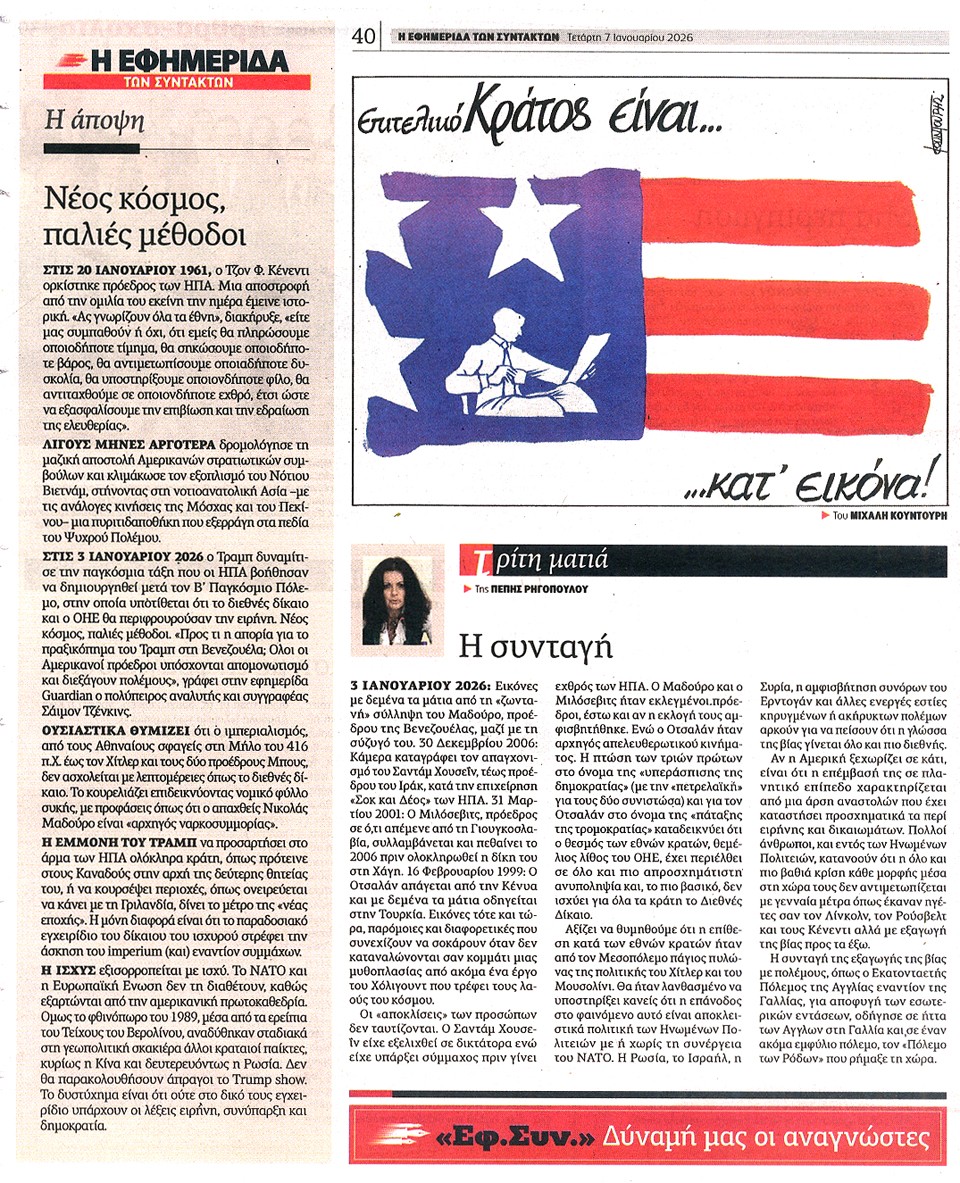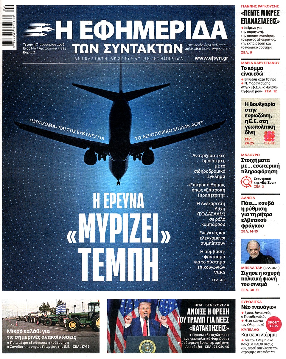 Η ΕΦΗΜΕΡΙΔΑ ΤΩΝ ΣΥΝΤΑΚΤΩΝ - 07 Ιανουαρίου 2026