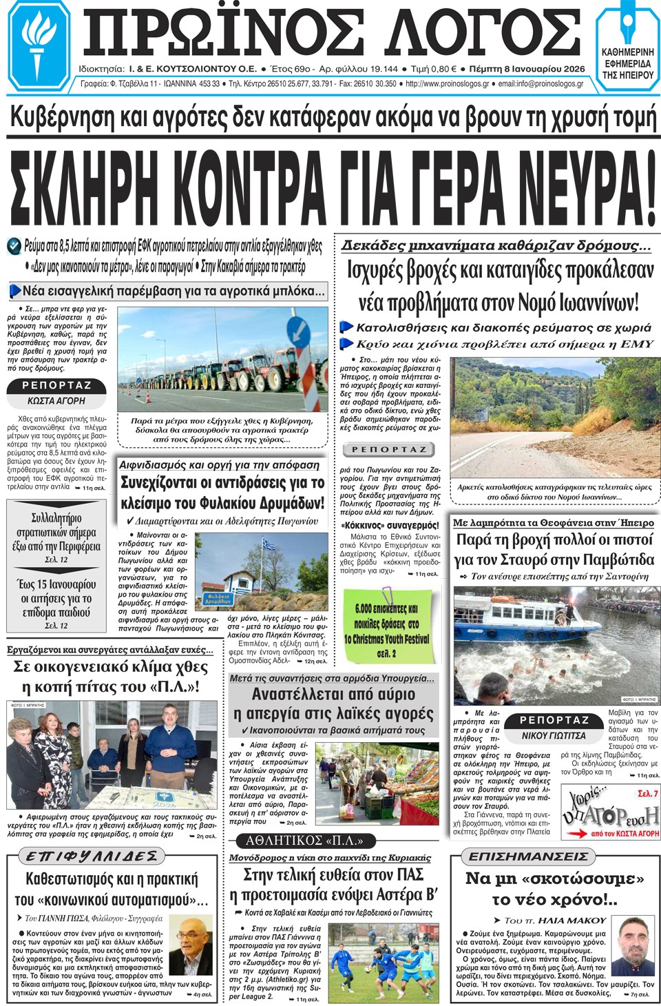 ΠΡΩΙΝΟΣ ΛΟΓΟΣ - 08 Ιανουαρίου 2026