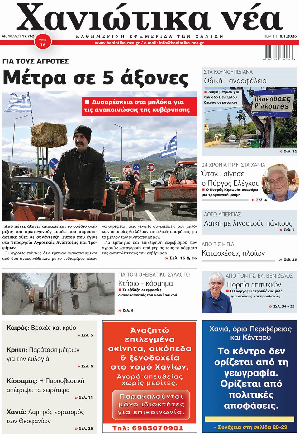 ΧΑΝΙΩΤΙΚΑ ΝΕΑ - 08 Ιανουαρίου 2026