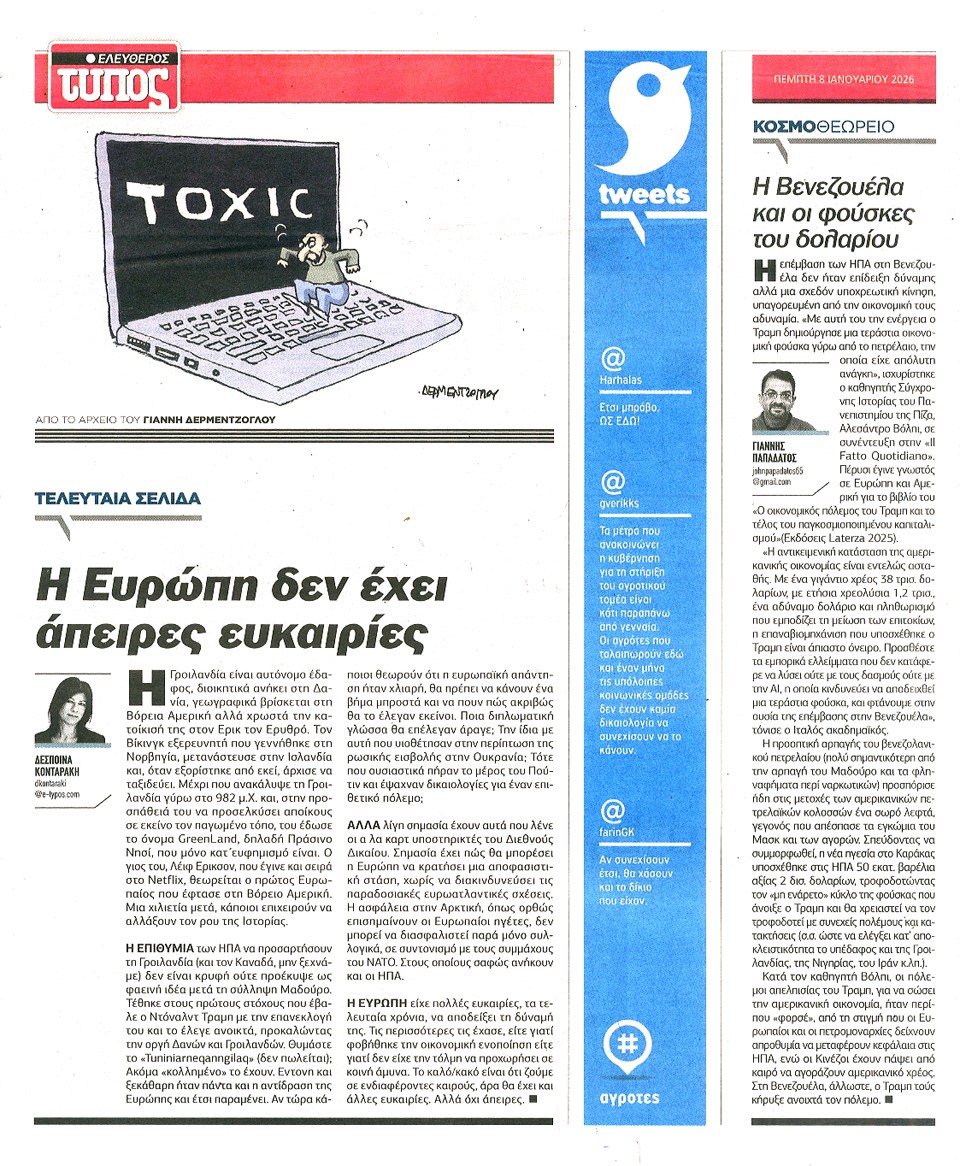 ΕΛΕΥΘΕΡΟΣ ΤΥΠΟΣ - 08 Ιανουαρίου 2026