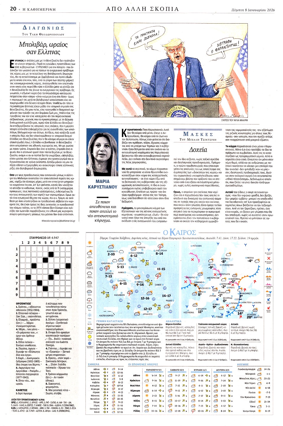 ΚΑΘΗΜΕΡΙΝΗ - 08 Ιανουαρίου 2026