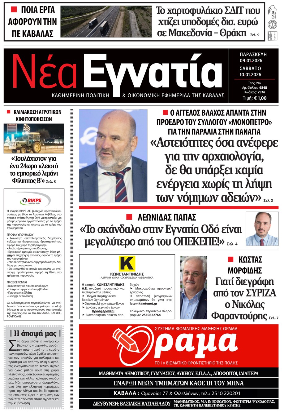 ΝΕΑ ΕΓΝΑΤΙΑ - 09 Ιανουαρίου 2026