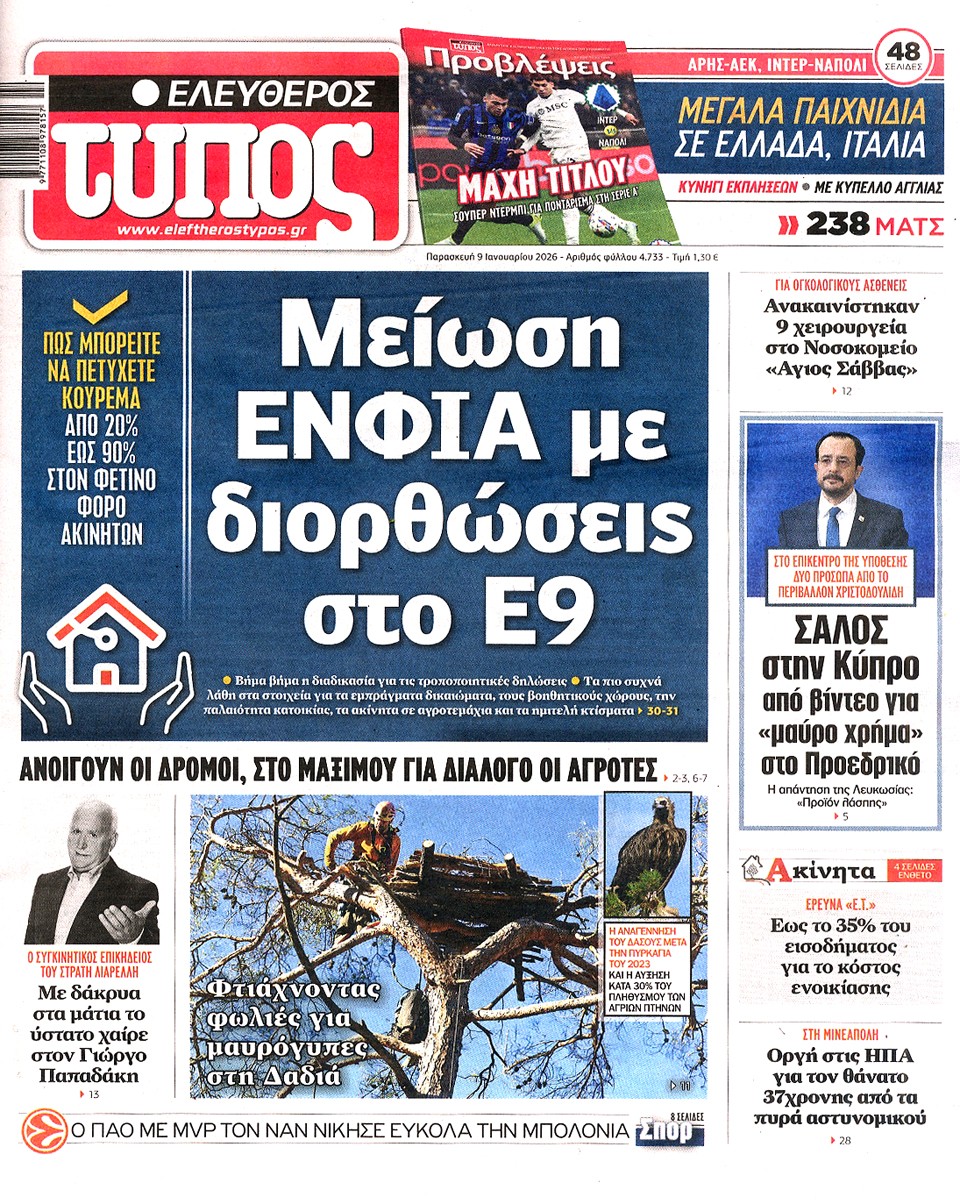 ΕΛΕΥΘΕΡΟΣ ΤΥΠΟΣ - 09 Ιανουαρίου 2026