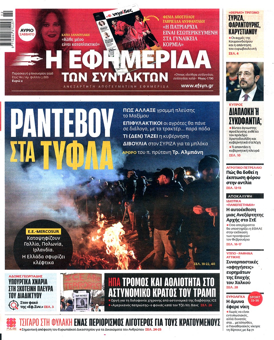 Η ΕΦΗΜΕΡΙΔΑ ΤΩΝ ΣΥΝΤΑΚΤΩΝ - 09 Ιανουαρίου 2026