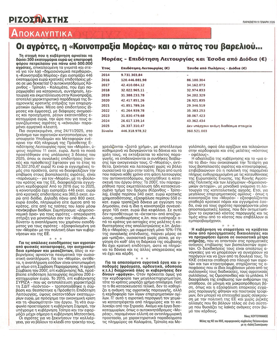 ΡΙΖΟΣΠΑΣΤΗΣ - 09 Ιανουαρίου 2026
