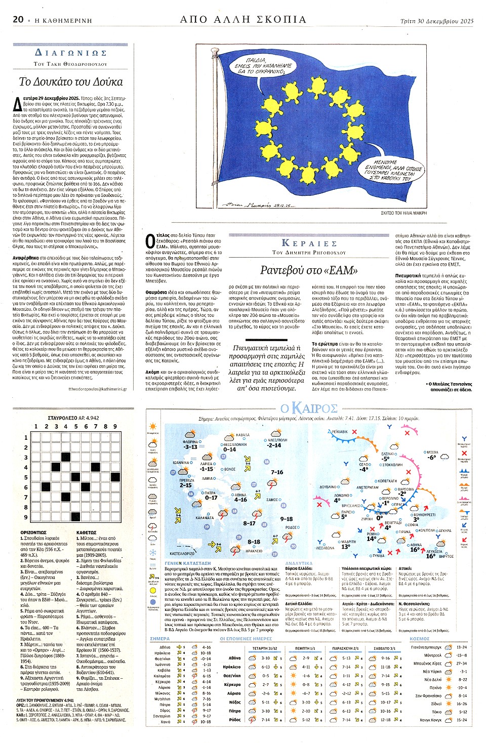 ΚΑΘΗΜΕΡΙΝΗ - 30 Δεκεμβρίου 2025